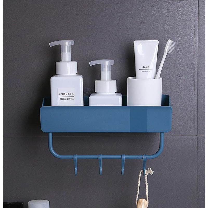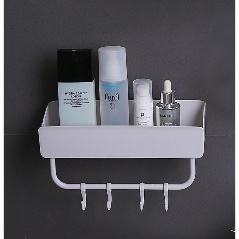 Khay Kệ nhà tắm nhà bếp dán tường hút chân không bằng nhựa có 4 móc treo và 1 thanh phơi dài nhà tắm chống thấm nước , chịu lực 1.5kg- Số lượng sản phẩm: