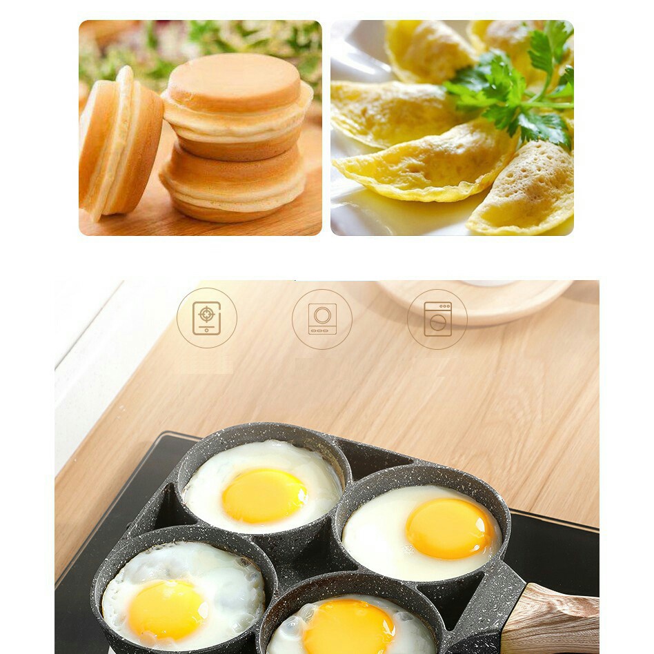 Nhà cửa & Đời sống > Dụng cụ nhà bếp > Chảo || MVP396 Chảo Chiên Trứng 4 Ngăn - Chảo Làm Bánh 4 Lỗ Chống Dính- Chống Dính Tay Cầm GỗCòn hàng