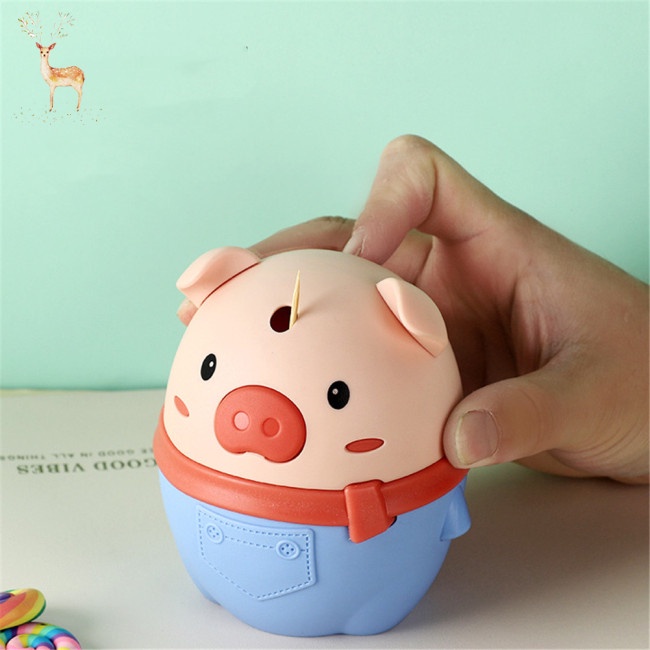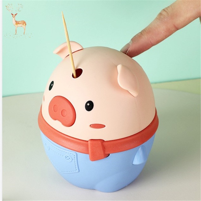 Hủ đựng tăm xỉa răng nhấn tự động đẩy tăm hình bé heoSản phẩm dùng để đựng, bảo quản tăm tránh khỏi bụi bẩn bên ngoài môi trường.