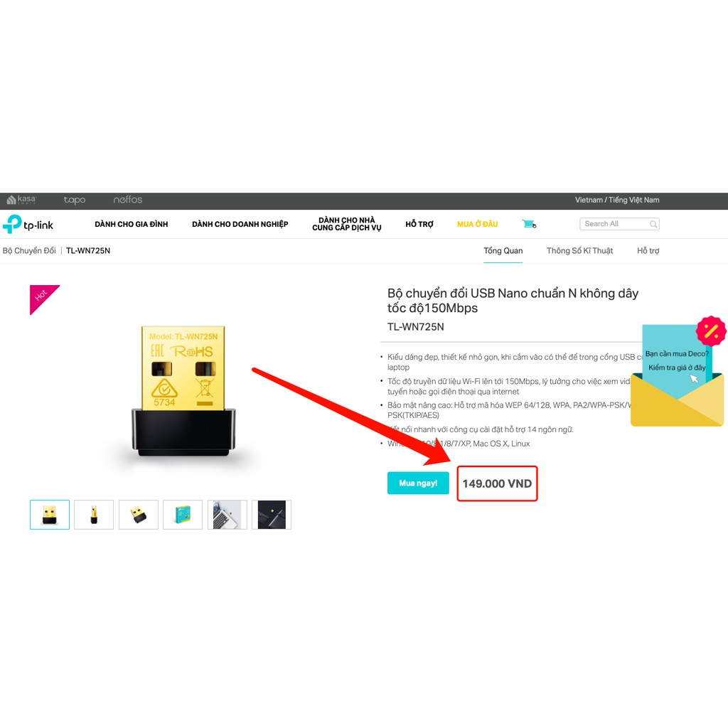 Giới thiệu N 150Mbps USB Bộ thu WiFi Siêu nhỏ gọn- TL-WN725N / DWA-121 - Hàng Chính Hãng