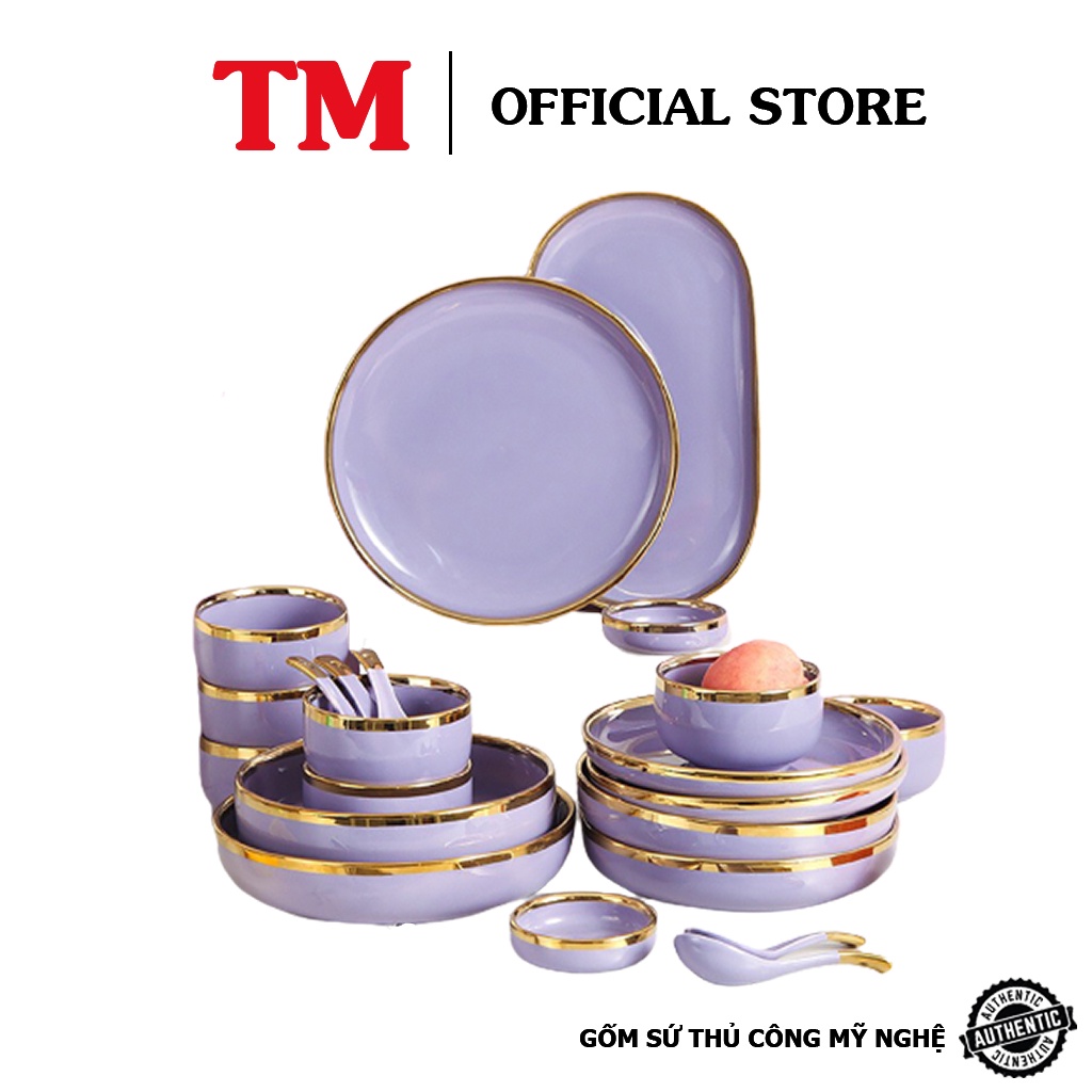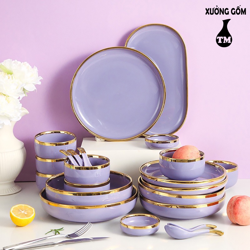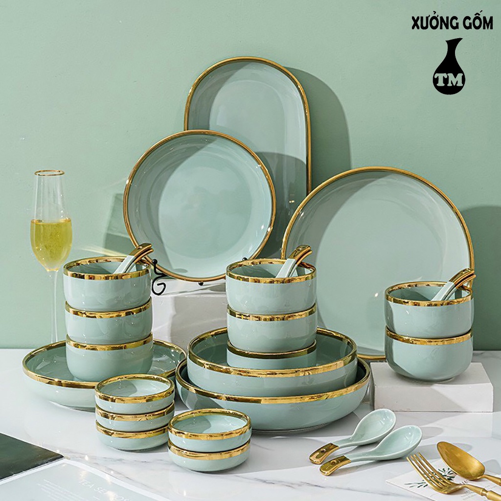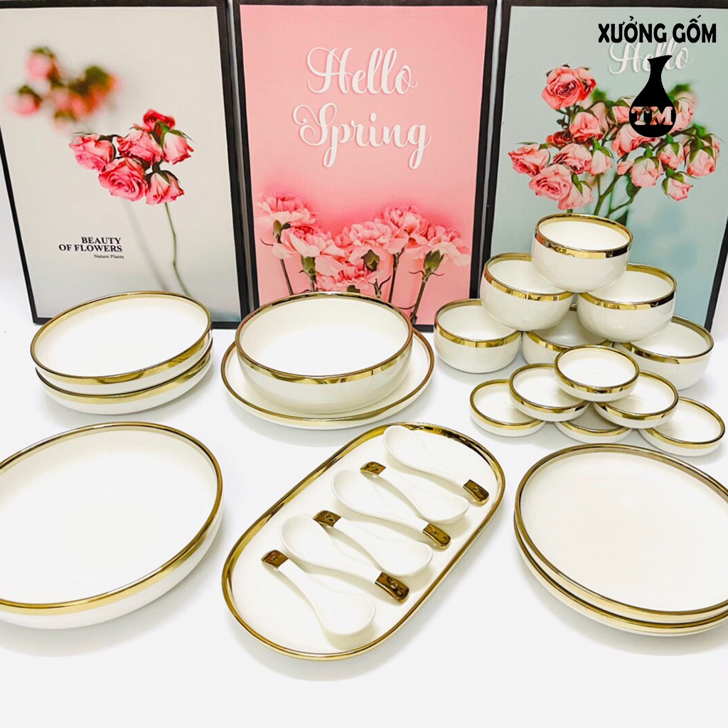 Nhà cửa & Đời sống > Bộ đồ bàn ăn > Tô || Bộ Đồ Ăn 26 Món Viền Vàng Phong Cách Bắc Âu Cao Cấp – Xưởng Gốm TM Bát TràngCòn hàng