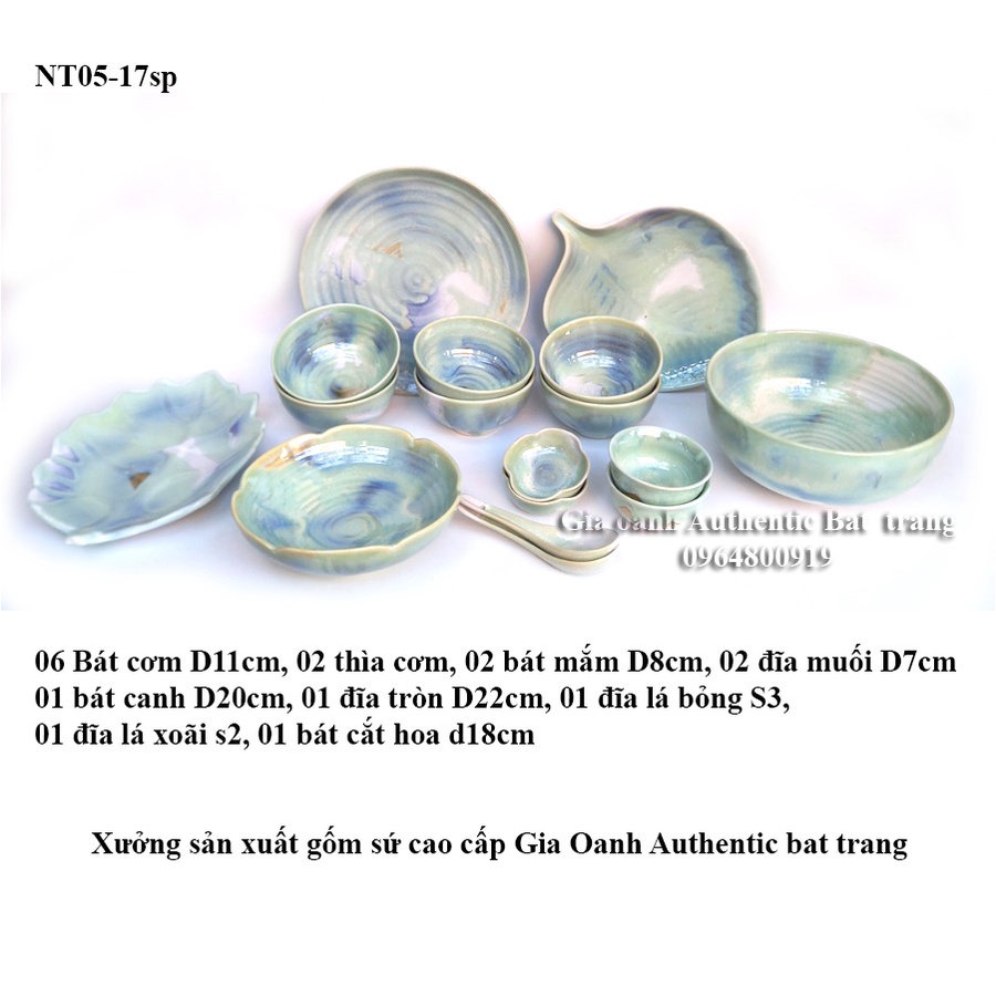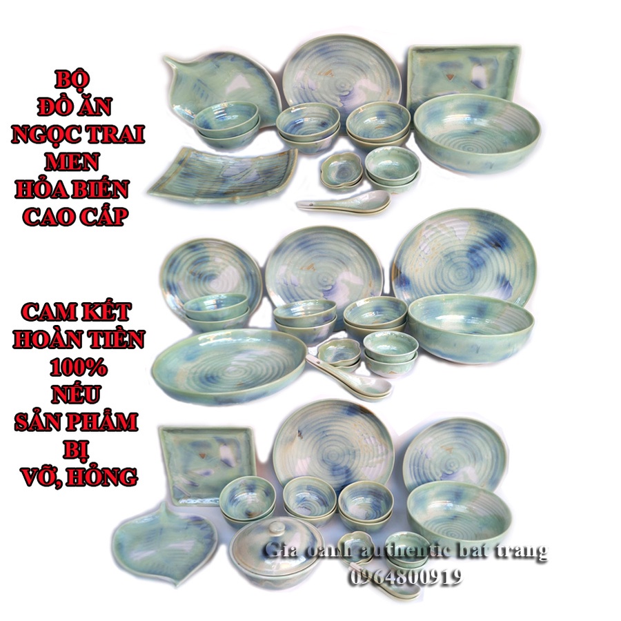 Bộ đồ ăn bát, đĩa Ngọc Trai – Men hỏa biến cao cấp - Nghệ thuật - đẹp và sang trọng- gốm sứ Gia Oanh Authentic bát tràng