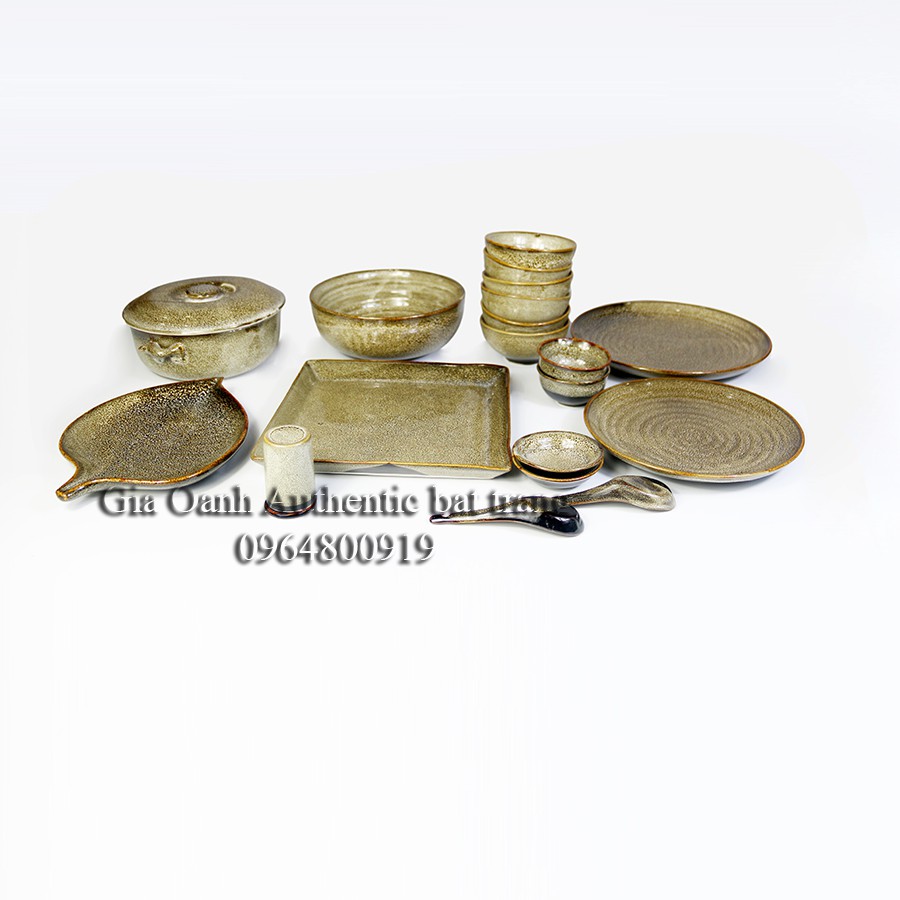 Bộ đồ ăn cao cấp GẤM VÀNG - Men hỏa biến chuyên dùng cho nhà hàng, khách sạn - Xưởng gốm sứ Gia Oanh Authentic bát tràngBộ đồ ăn GVS1( 06 bát ăn cơm D12+02 Thìa cơm+02 bát mắm+02 đĩa muối+01 đĩa tròn D22cm + 01đĩa tròn D26cm + 01 Âu cơm có nắp D20+01 bát Canh D20 = 16 sản phẩm