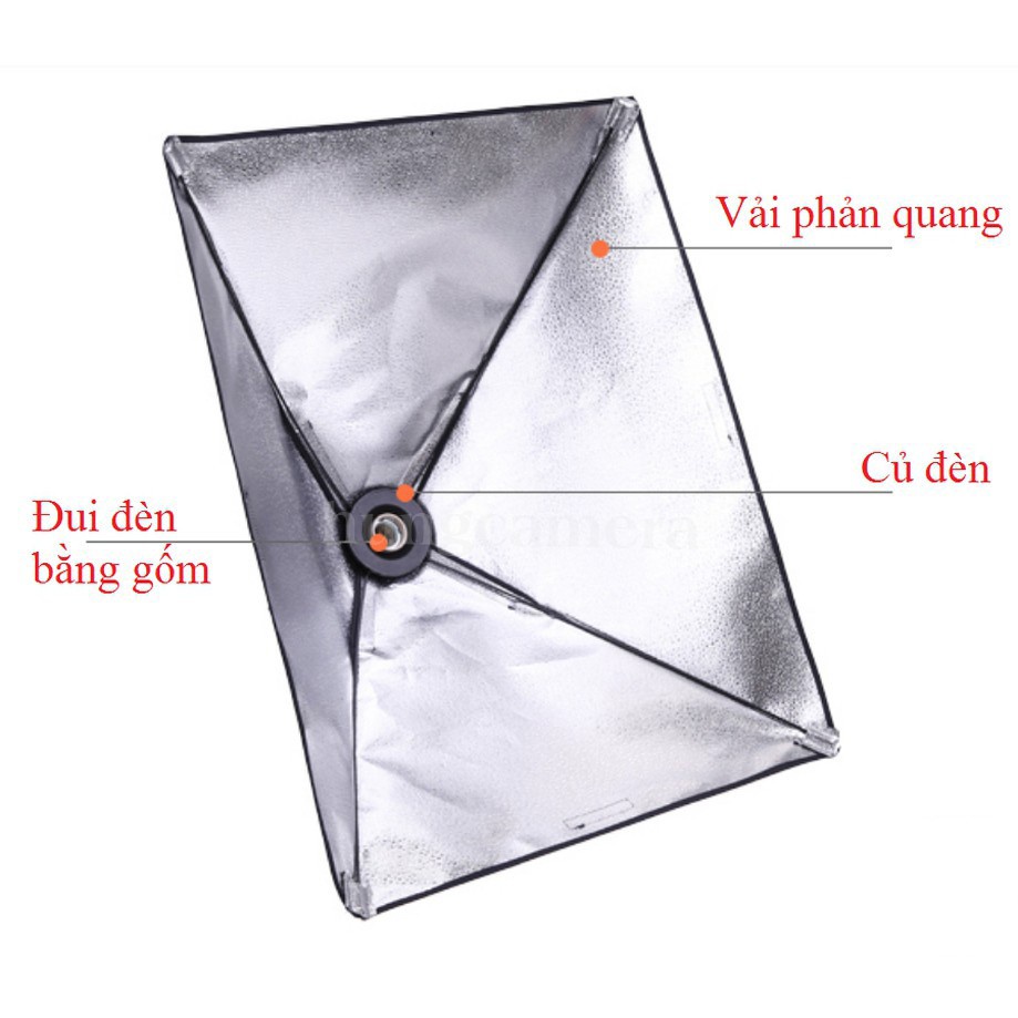 - Chụp đèn với lớp bạc bên trong giúp tập trung ánh sáng tốt hơn, sáng hơn kích thước 50x70xm. Phía bên ngoài viền có lớp vải dán để dính tấm softbox.