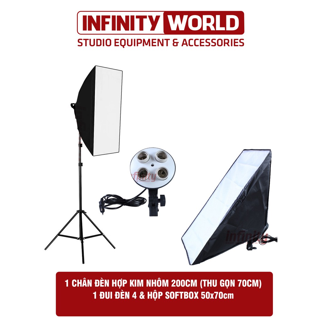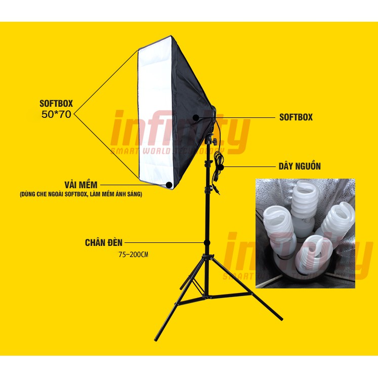- BỘ KIT 4 KHÔNG CHÂN: Bao gồm 1 Softbox 50x70cm & Đui đèn 4 E27