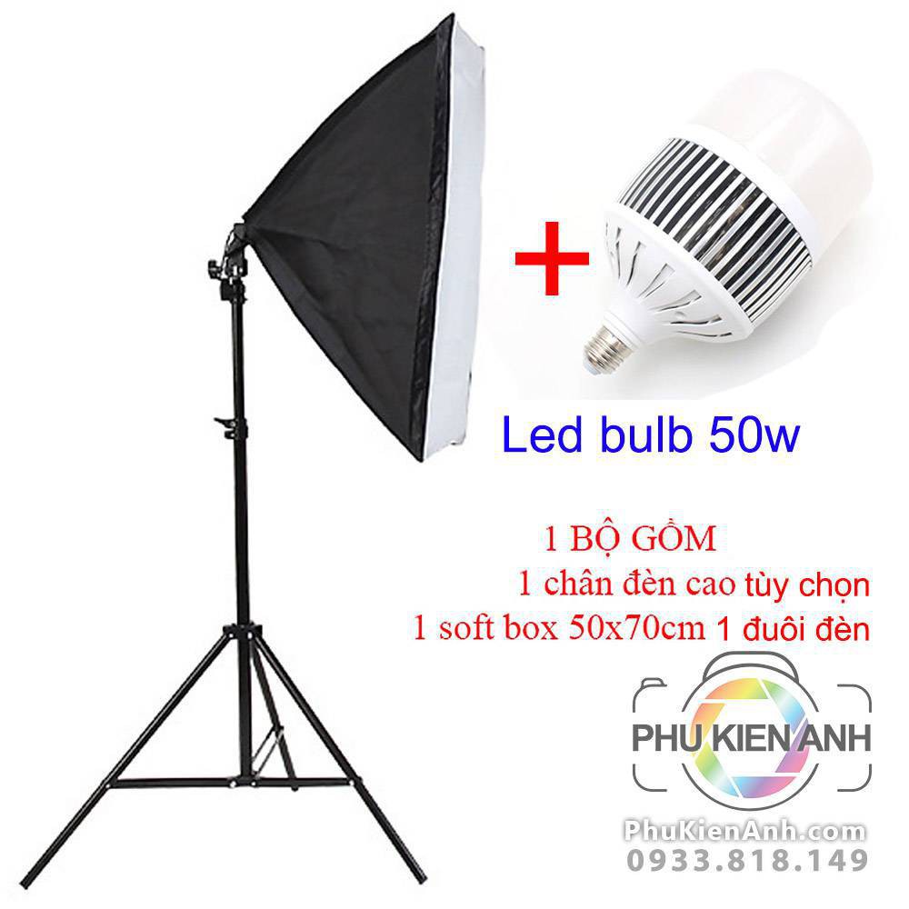 Bộ đèn combo Chân đèn + Softbox 1 đuôi đèn + 1 Led quay phim, livestream, chụp ảnh