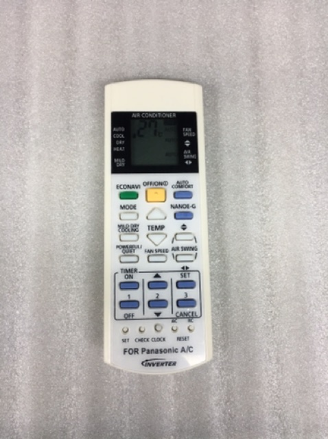 Khiển điều hoà Panasonic inverter 2 chiều. Chuyên dùng cho điều hoà panasonic inverter 2 chiều. Thiết kế nhỏ gọn rất dễ sử dụng,chất lượng tốt độ bền cao. Holine:0973475089.Giá KOLZ