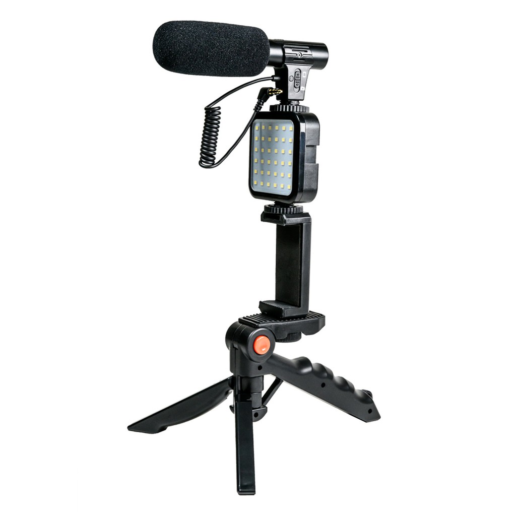 Vlogging Kit được thiết kế để nâng cao video của bạn với âm thanh và ánh sáng tốt hơn trong nhà hoặc ngoài trời, nó có micrô đa năng để hoạt động trên bất kỳ điện thoại thông minh hoặc máy ảnh nào, đèn led có 36 đèn led siêu sáng, tay cầm ba chân có thể sử dụng nó như một chân máy quay video của bạn và một bộ điều hợp điện thoại thông minh có gắn sẵn giày, cho phép bạn gắn không chỉ điện thoại của mình, mà còn cả đèn hoặc micrô.