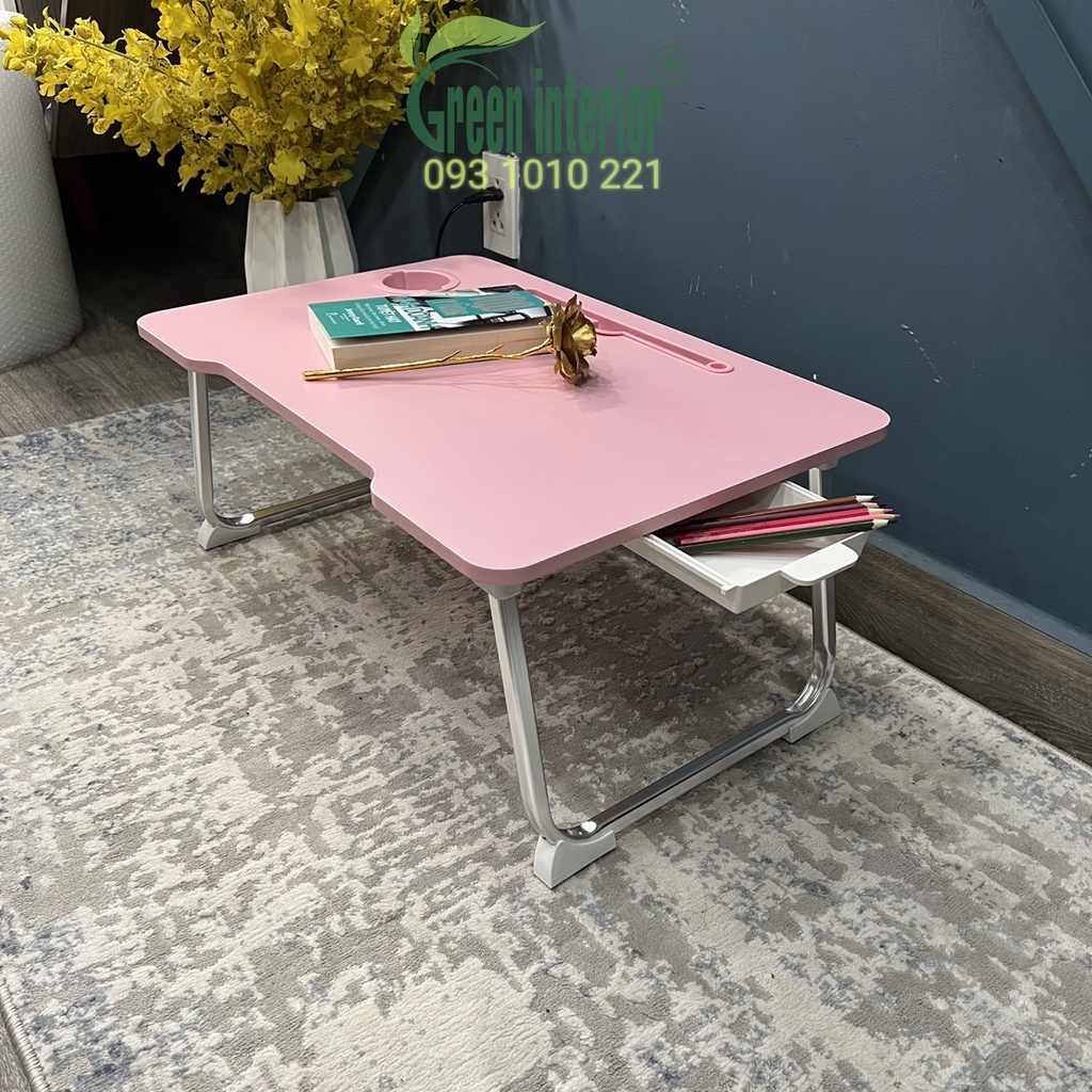 Nhà cửa & Đời sống > Nội thất > Bàn || Bàn học gấp gọn, bàn làm việc gấp gọn Green Furni có ngăn kéo, có khe cắm ipad màu hồng THKCòn hàng