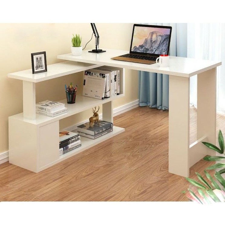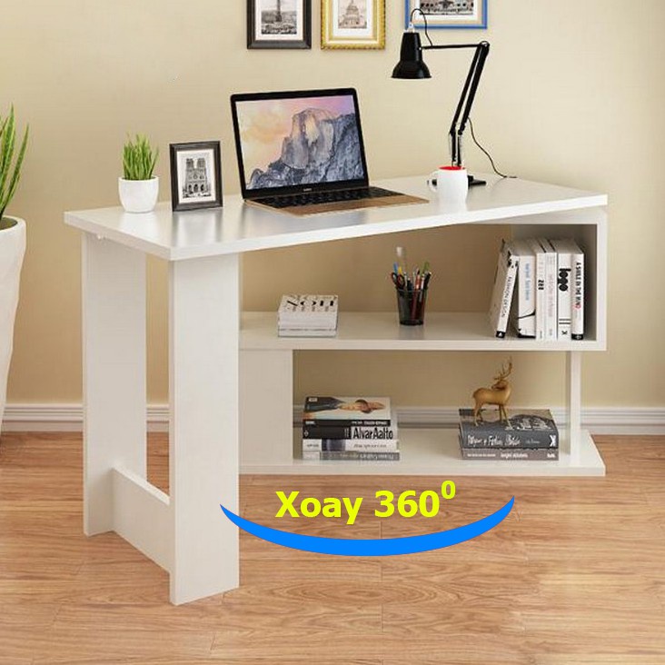 Bàn làm việc Xoay 360 độ là loại bàn có kệ sách kèm theo, Mặt bàn và kệ có thể quay tròn được. Tiện dụng khi bạn muốn thay đổi vị trí kệ sách và góc ngồi cho phù hợp với không gian nhà, phòng học, phòng làm việc một cách linh động.Bàn làm việc có kích thước lớn, kèm kệ sách to rộng có 2 tầng giúp chiếc bàn chắc chắn không bị lung lay khi sử dụng. Bàn to phù hợp làm bàn giám đốc, bàn trưởng phòng, bàn sếp...