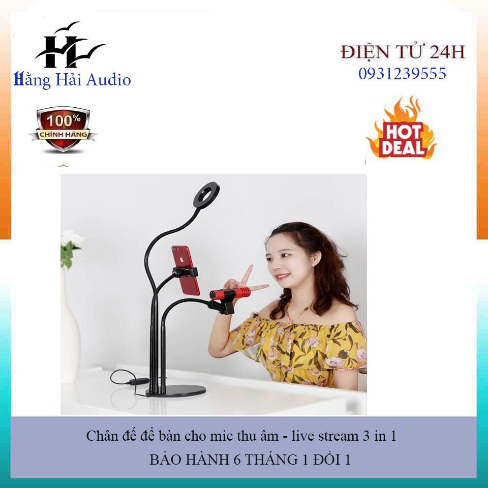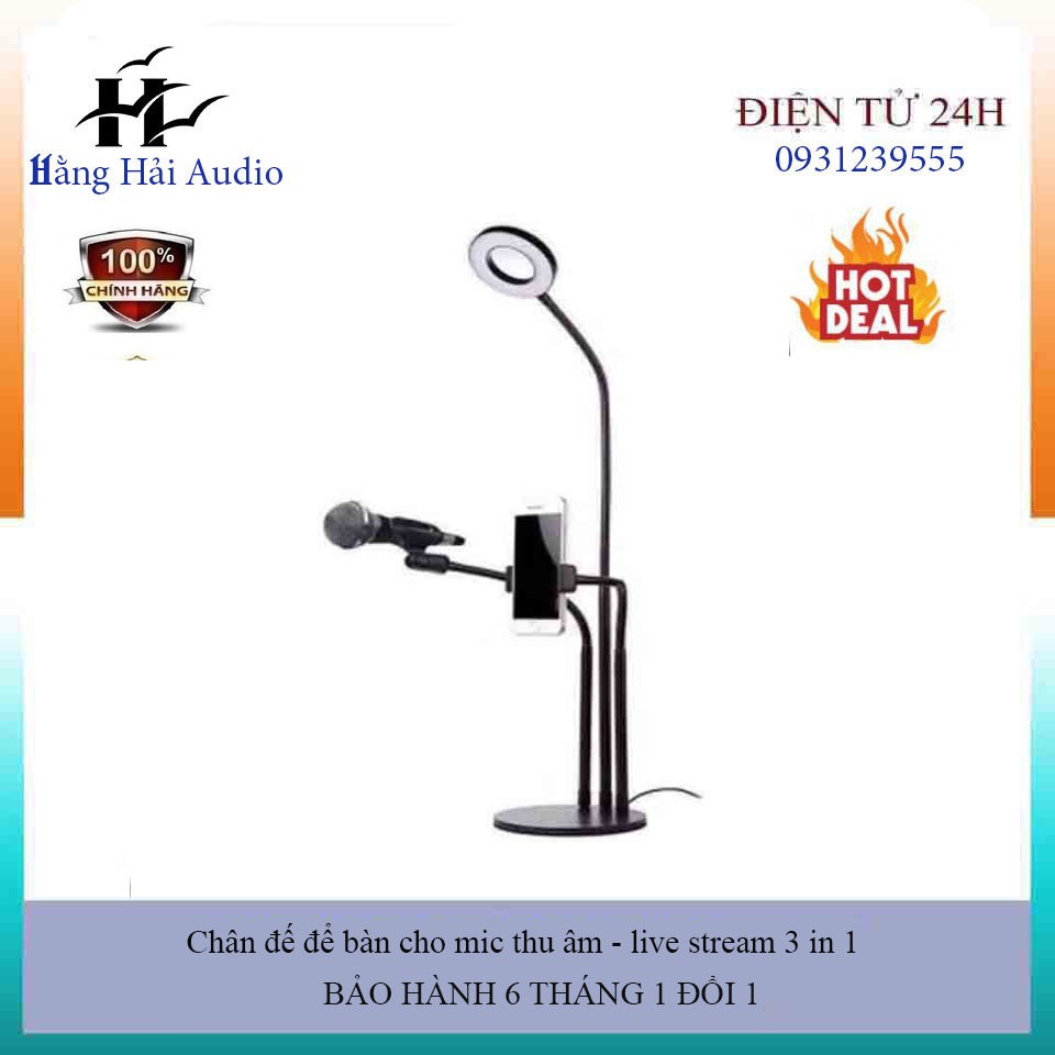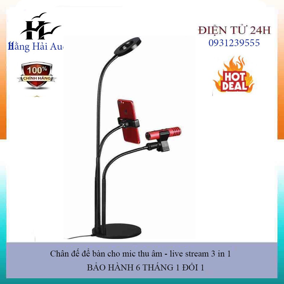 Cây đèn livestream.Bộ dụng cụ hỗ trợ Live Stream 3 in 1 đa năng có đèn LED