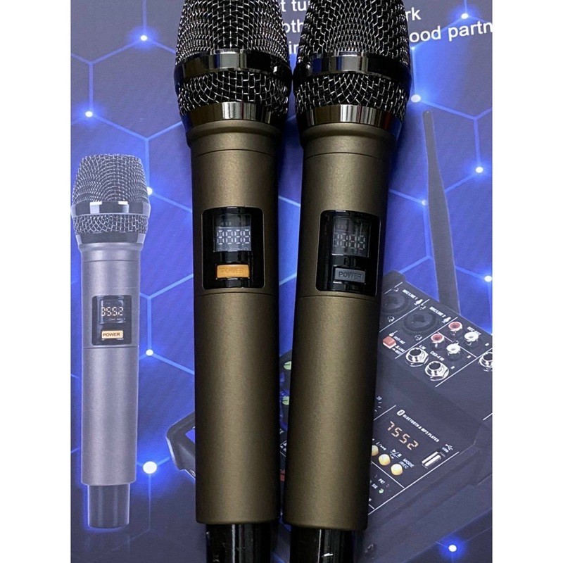 Thiết Bị Âm Thanh > Micro thu âm || Bàn Mixer G4 live stream hỗ trợ màn hình LED có bluetooth kiêm 2 mic không dây tiện cho oto loa kéoCòn hàng