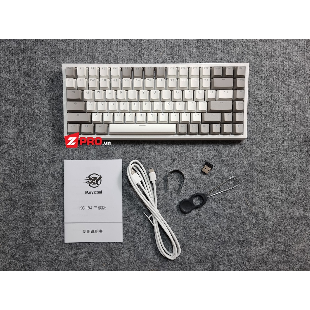 Giới thiệu Bàn phím cơ Keycool KC84 3 Modes (Wireless 2.4g, Bluetooth 5.0, HotSwap) - Trắng