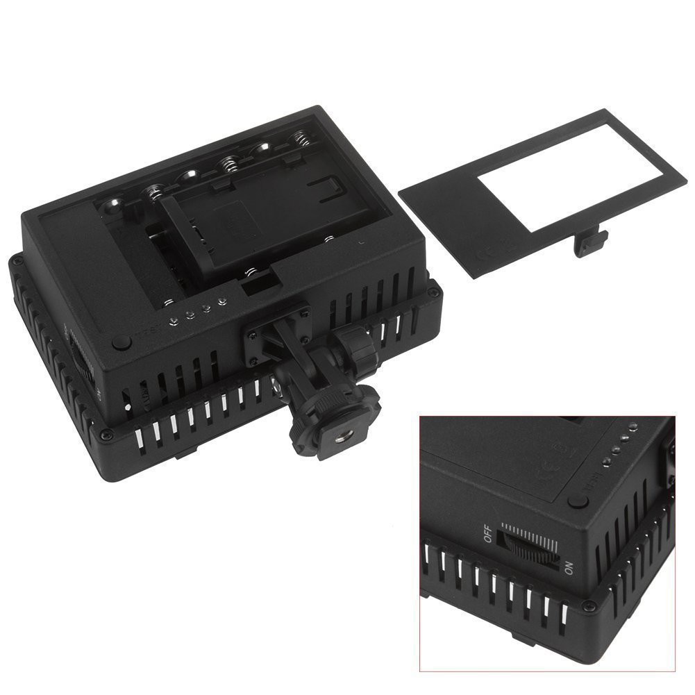 Công tắc điều chỉnh độ sáng; Có thể gắn vào bất kỳ đế gắn nóng tiêu chuẩn nào trên hầu hết các máy ảnh DSLR hoặc máy quay video kỹ thuật số cũng như giá ba chân và giá đỡ ánh sáng được trang bị đế gắn hotshoe hoặc chân 1/4 inch; Một đầu xoay, cho phép bạn tăng hoặc giảm góc của ánh sáng