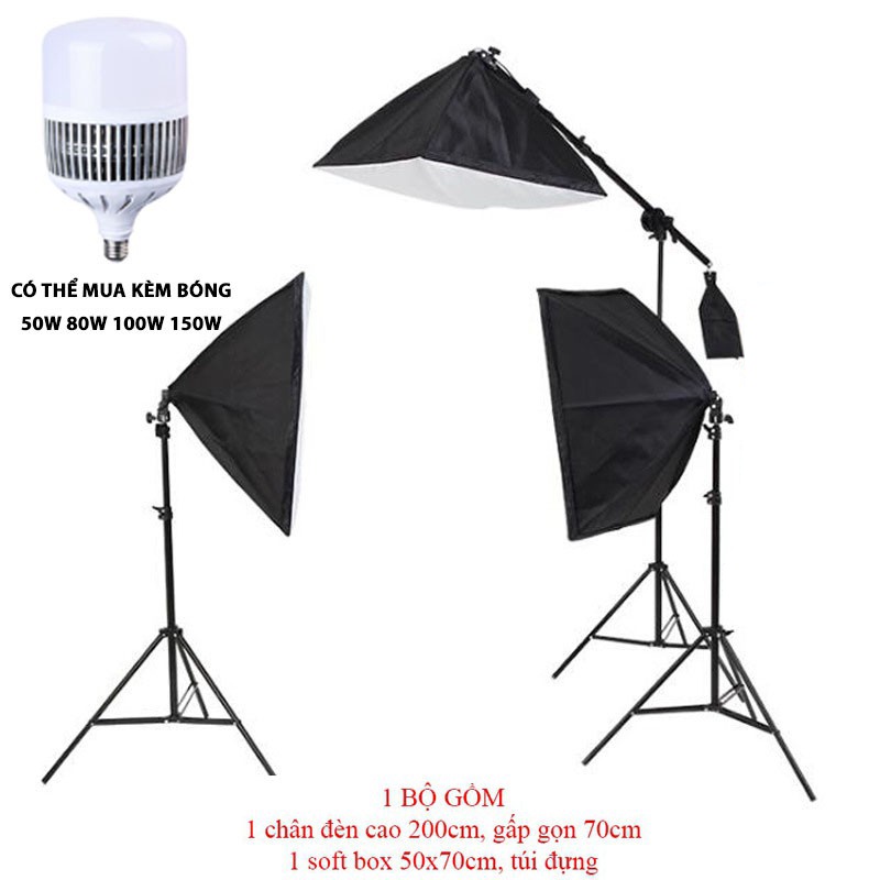 Bộ đèn studio chụp ảnh, quay phim, Livestream chuyên nghiệp, cao 2m softbox 50x70cm