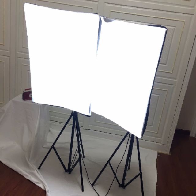 - Chụp đèn với lớp bạc bên trong giúp tập chung ánh sáng tốt hơn, sáng hơn, kích thước 50x70cm. Phía bên ngoài viền có lớp vải dán để dính tấm Softbox.