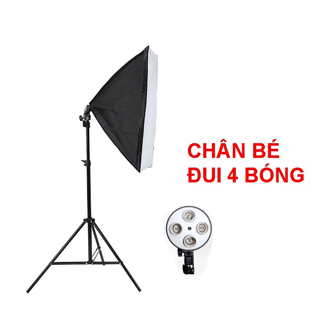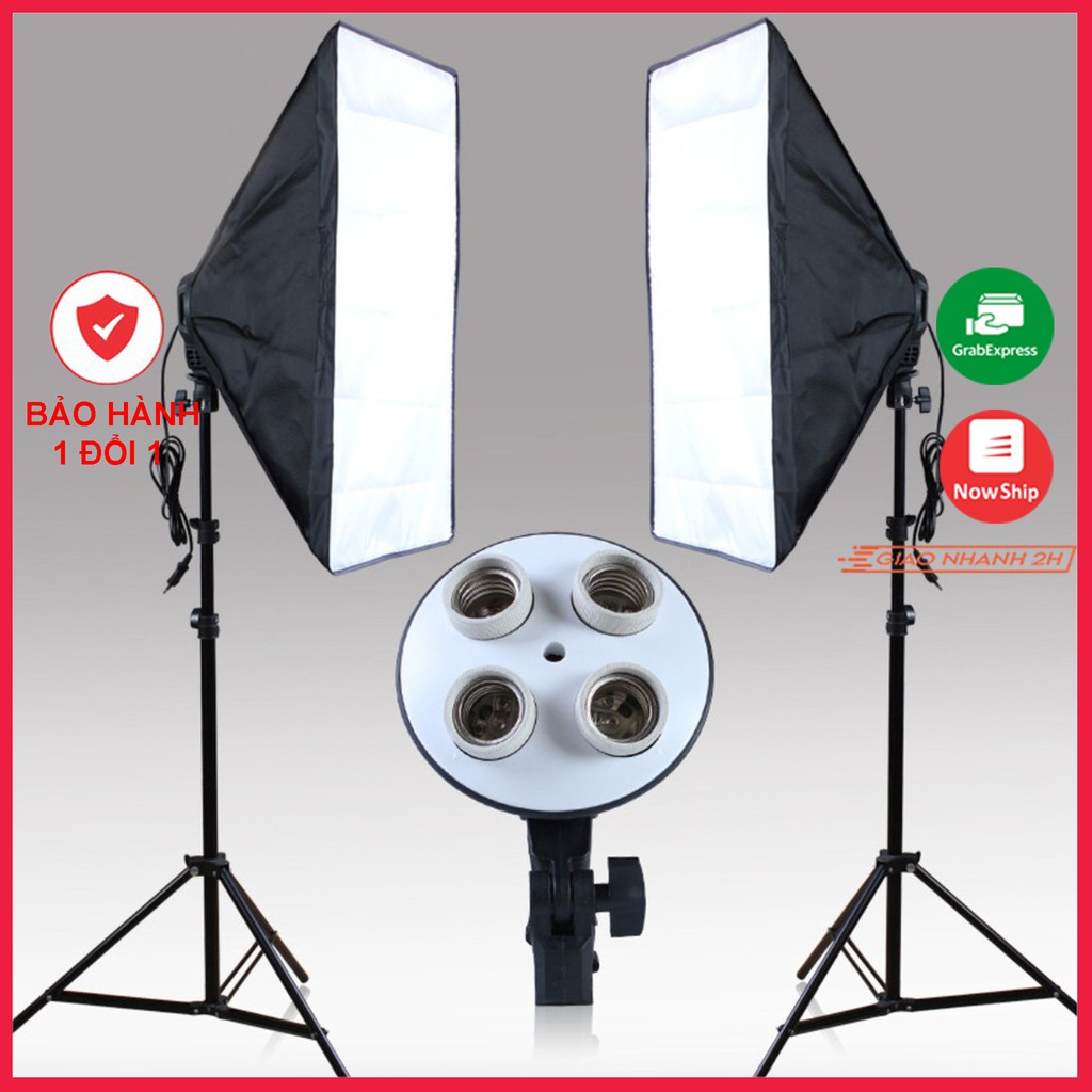 Bộ Đèn Studio Chụp Ảnh Sản Phẩm Chân Đèn 2m Kèm Softbox 50x70 Hỗ Trợ Sáng, Đui 4 Bóng
