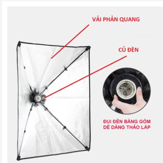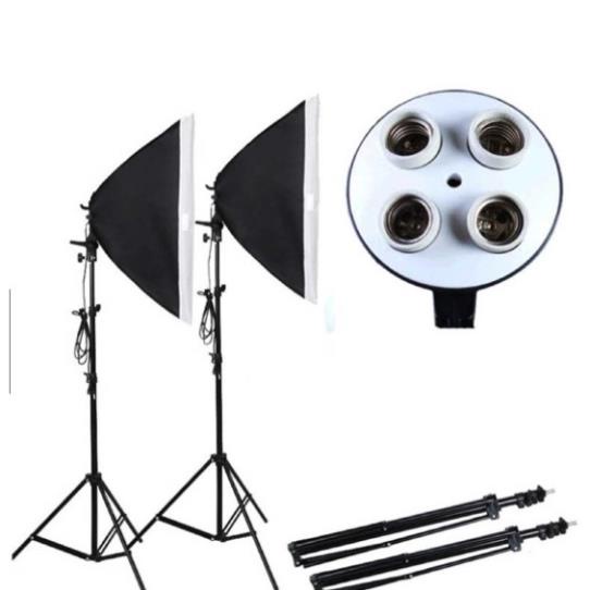 Bộ Đèn Studio Chụp Ảnh Sản Phẩm Chân Đèn 2m Kèm Softbox 50x70 Hỗ Trợ SángBộ đèn hỗ trợ từ 1 đến 4 đui bóng cỡ đui E27