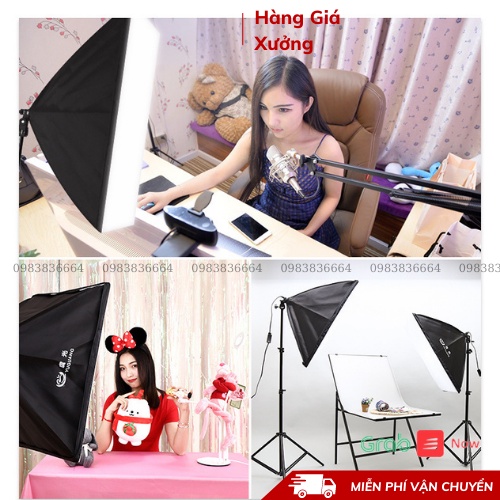 Bộ đèn studio chụp ảnh sản phẩm, quay phim, livestream chuyên nghiệp, chân cao 2m softbox 50x70cm