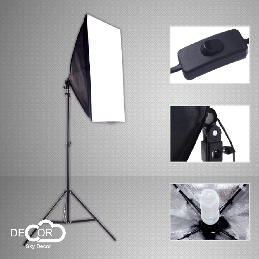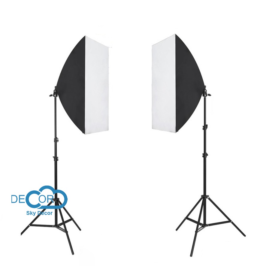 Bộ đèn Studio chụp ảnh sản phẩm softbox 70x50cm chân đèn 2m, bóng 175W ánh sáng trắng