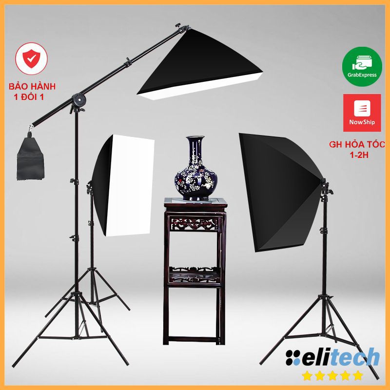 Giới thiệu Bộ đèn studio chụp ảnh sản phẩm, quay phim, livestream chuyên nghiệp, chân cao 2m softbox 50x70cm