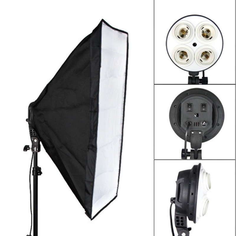Giới thiệu Bộ Đèn Studio, Đèn Chụp Ảnh Sản Phẩm Chân Đèn 2m Kèm Softbox 50x70 Hỗ Trợ Sáng, Đui 4 Bóng
