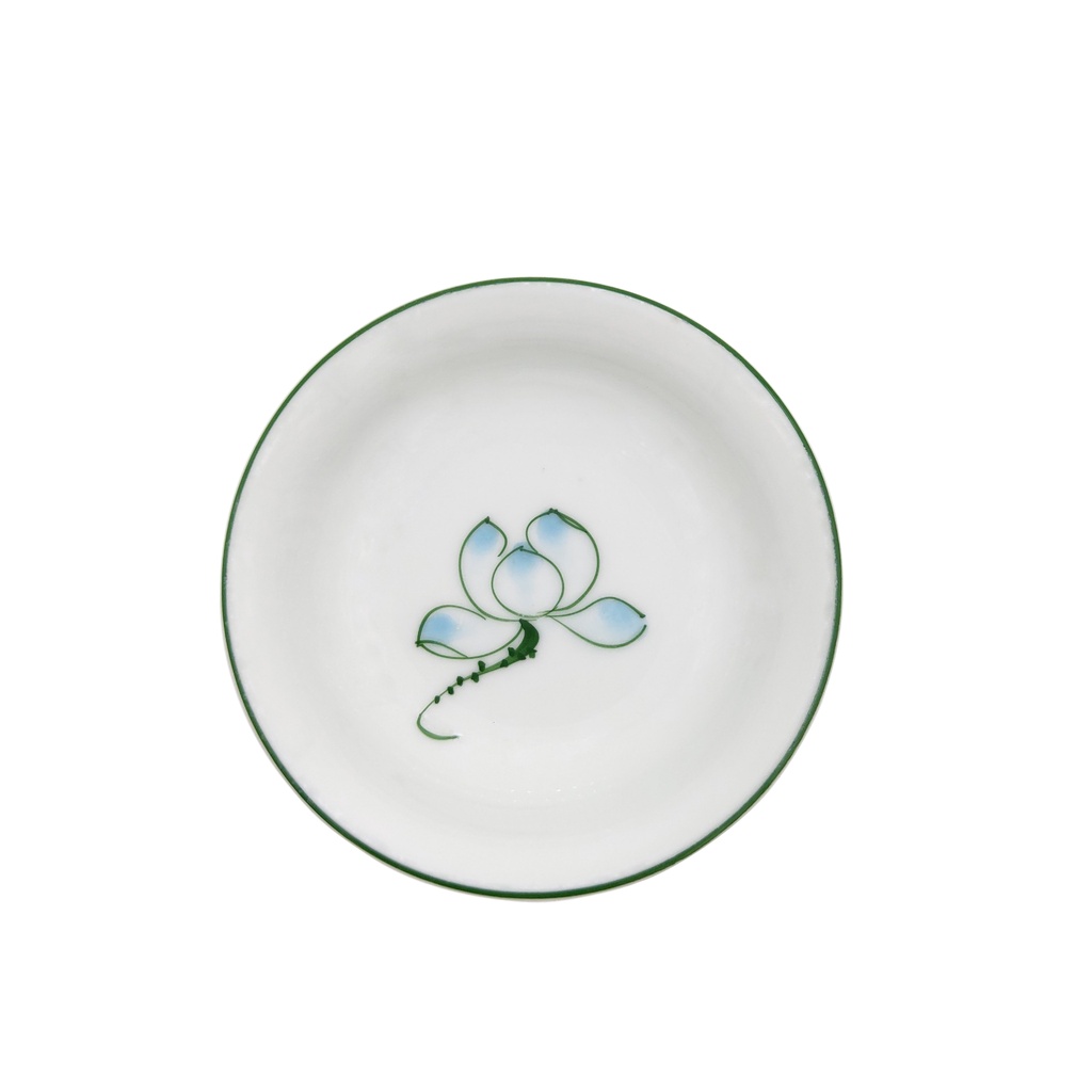 Giới thiệu Bộ Đồ Ăn Sứ UNC Việt Nam - Bát Chấm/ đĩa muối , hoa bông sen xanh vẽ tay 100%, men kem cao cấp, không chứa Chì & Cadimi