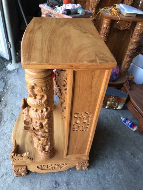 Bàn thờ thần tài ông địa gỗ gõ đỏ ngang 60 cm rồng cuộn cột 14 cm mẫu mới rất đẹpNgang 70 cm