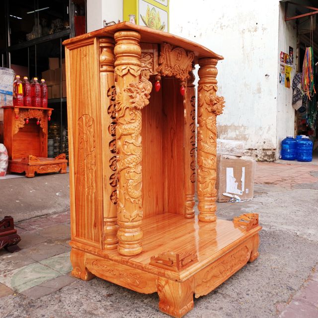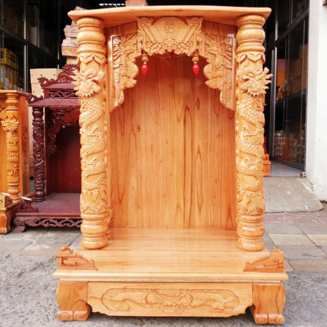 Bàn thờ thần tài gỗ xoan ngang 80 cm quỳ trụ mẫu mới rất đẹp