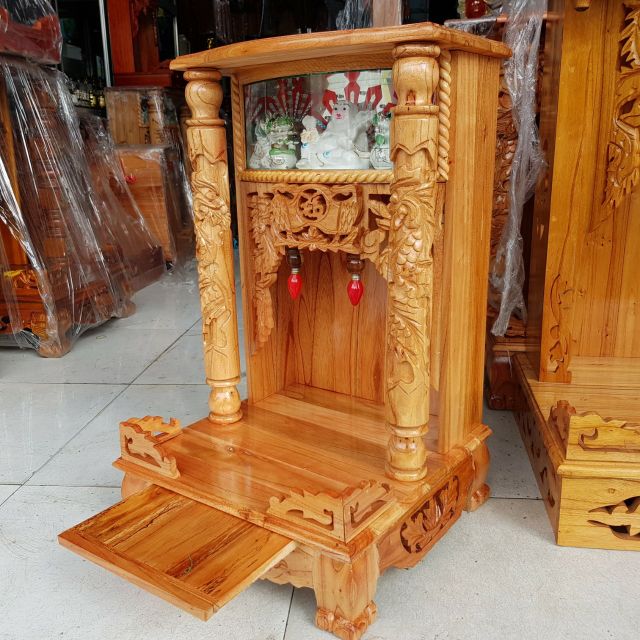 Nhà cửa & Đời sống > Nội thất > Tủ bếp || Bàn thờ thần tài ông địa gỗ xoan ngang 42 cm quỳ trụ điện tửCòn hàng