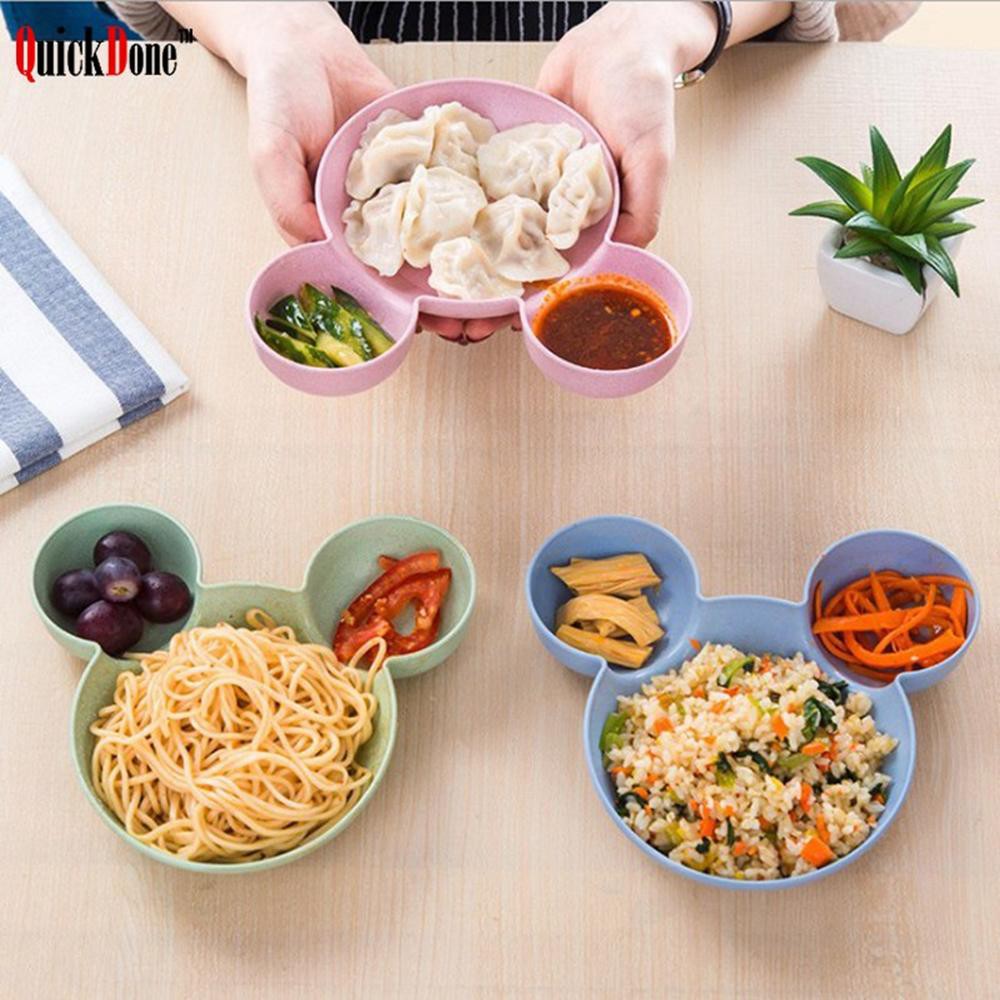 Bộ đồ ăn trưa gồm: Bát 3 ngăn, Thìa, Dĩa, Đũa - hình Chuột Mic chất liệu lúa mạch Kami20031Sử dụng Khay ăn trưa tiện lợi hoặc làm Khay ăn dặm cho trẻ.