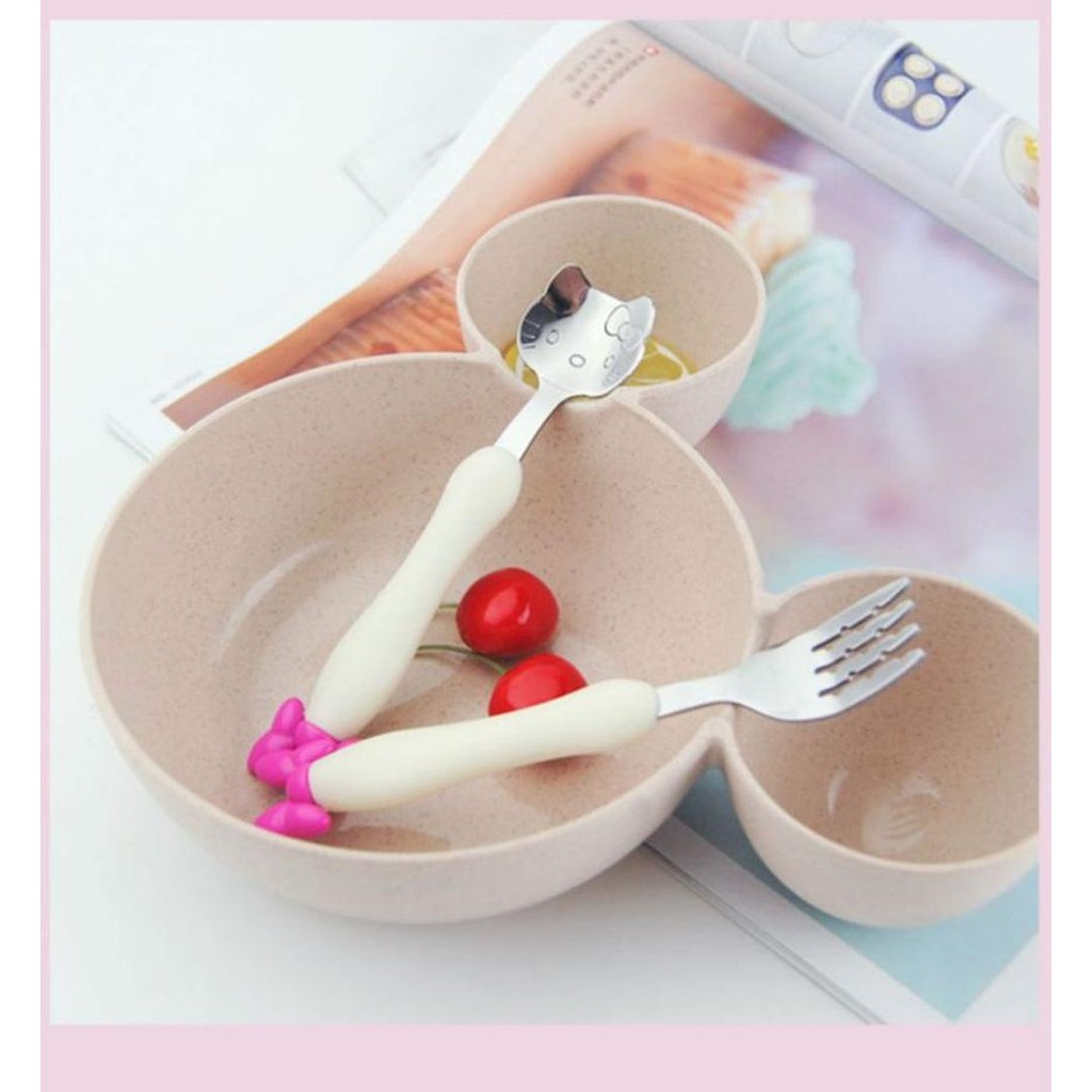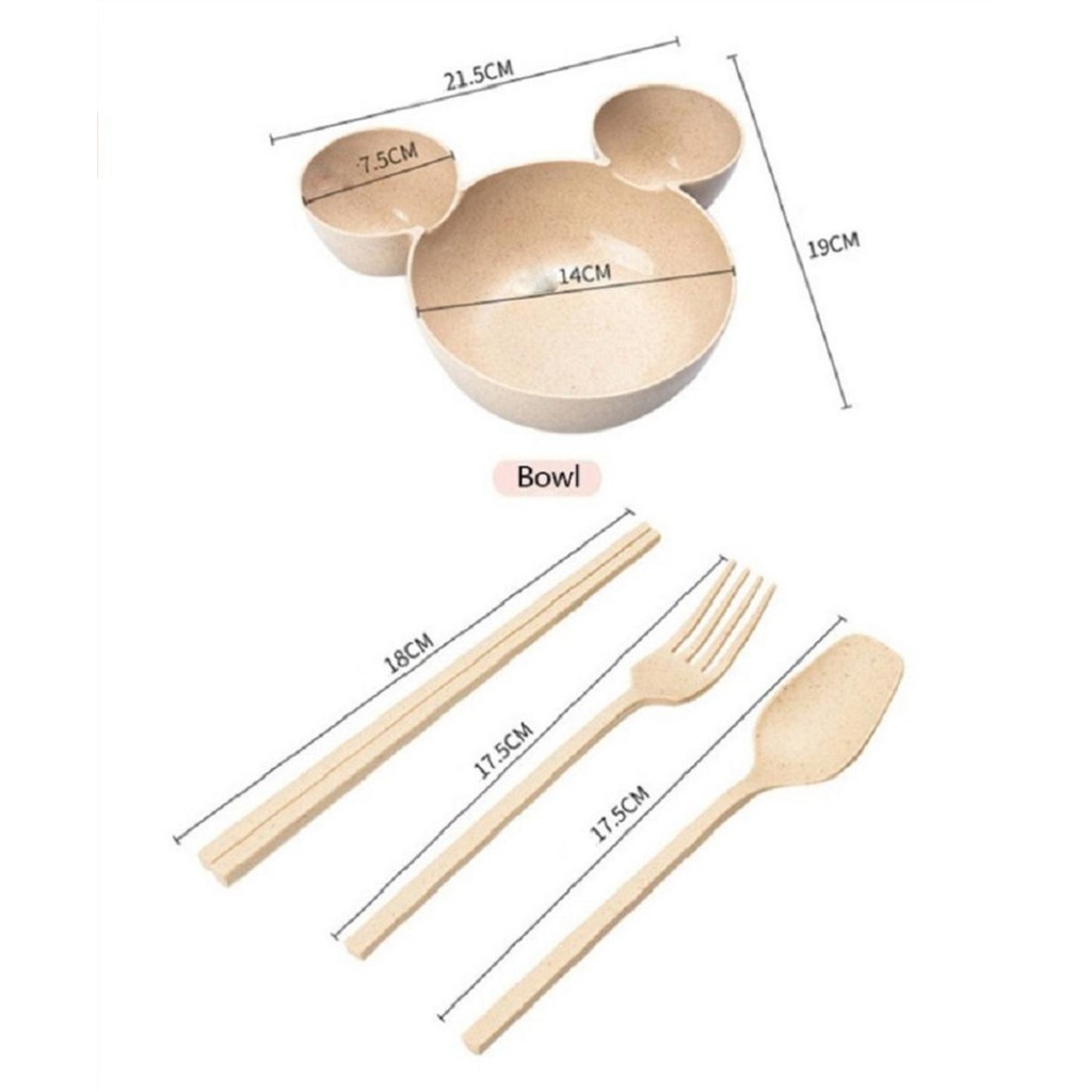 Nhà cửa & Đời sống > Bộ đồ bàn ăn > Dĩa || Bộ đồ ăn trưa gồm: Bát 3 ngăn, Thìa, Dĩa, Đũa - hình Chuột Mic chất liệu lúa mạch Kami20031Còn hàng