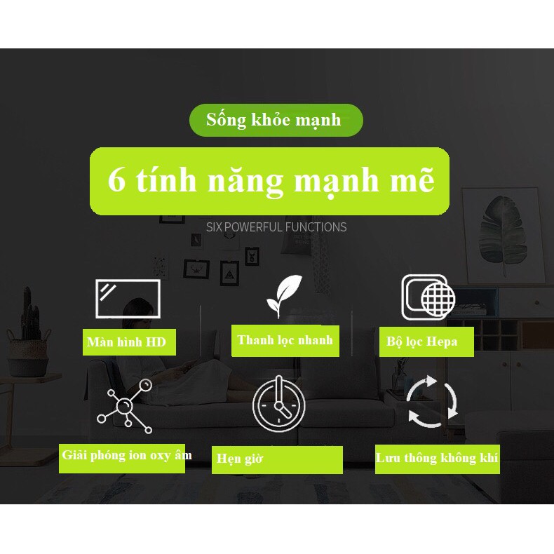 Máy lọc cao cấp được thiết kế bộ lọc 4 lớp lọc các bụi bẩn nhỏ lơ lửng cỡ 2.5 pm mà mắt thường không nhìn thấy, khử mùi formadehyte & lọc heptaGiúp không khí trong lành, dễ chịu loại bỏ các vấn đề về da & hô hấp