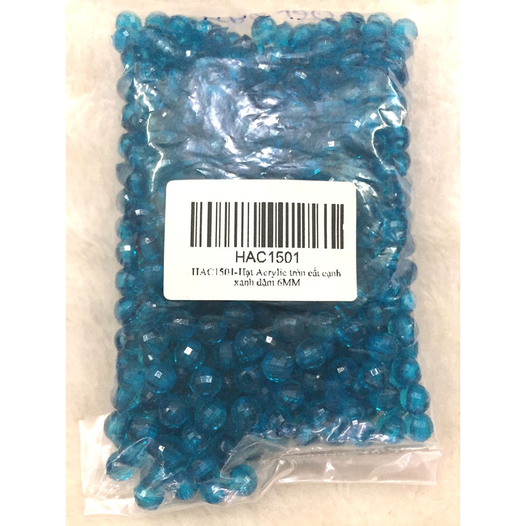 7. HAC1501: Hạt Acrylic tròn cắt cạnh xanh đậm 6mm, 50g/ bịch