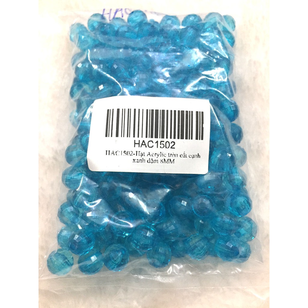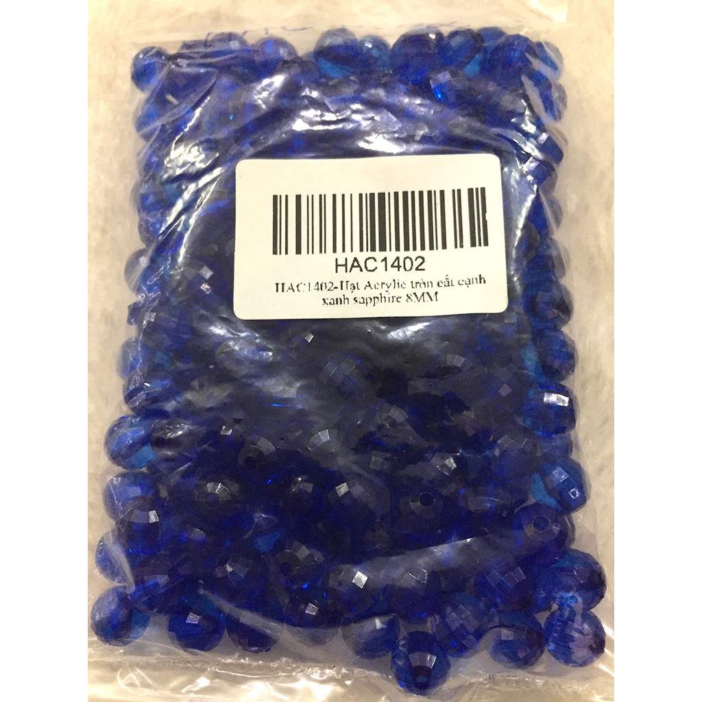 5. HAC1402: Hạt Acrylic tròn cắt cạnh xanh Sapphire 8mm, 50g/ bịch