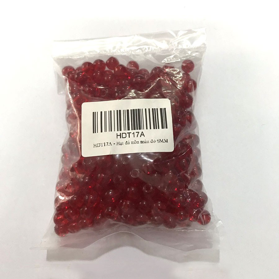1. HDT17A: Hạt đá tròn màu đỏ 6mm, 100g/ bịch