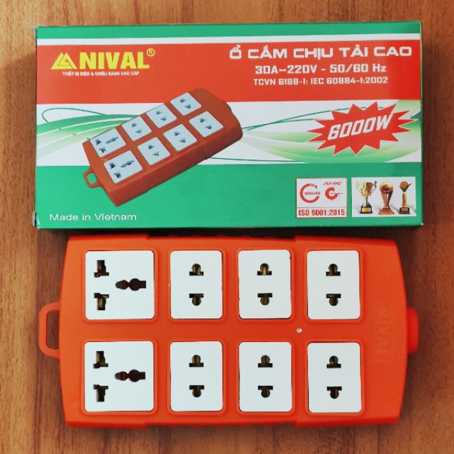 Thiết Bị Điện Gia Dụng > Mạch điện & Phụ tùng > Ổ cắm điện & Dây nối || [N860] Ổ cắm không dây Nival® chịu tải cao 6000W / Lõi sứ vỏ dày siêu bềnCòn hàng