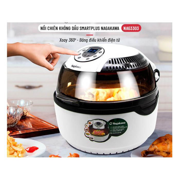 Nồi chiên không dầu xoay 360 độ Nagakawa NAG3303Nagakawa NAG3303 chiên thực phẩm không cần dầu mỡ