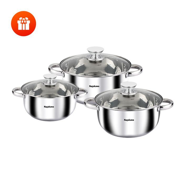 NAGAKAWA Nồi chiên DUNG TÍCH KHỦNG không dầu điện tử xoay 360 độ 9L TẶNG Bộ 3 nồi Inox cao cấp 4 đáy