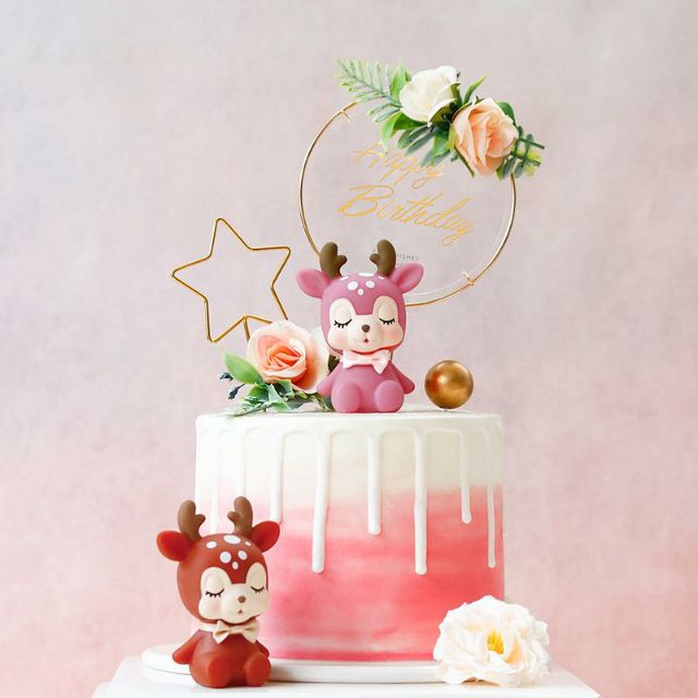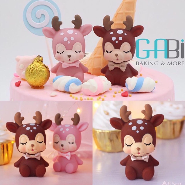 Giới thiệu Nai nhựa trang trí bánh nâu/hồng