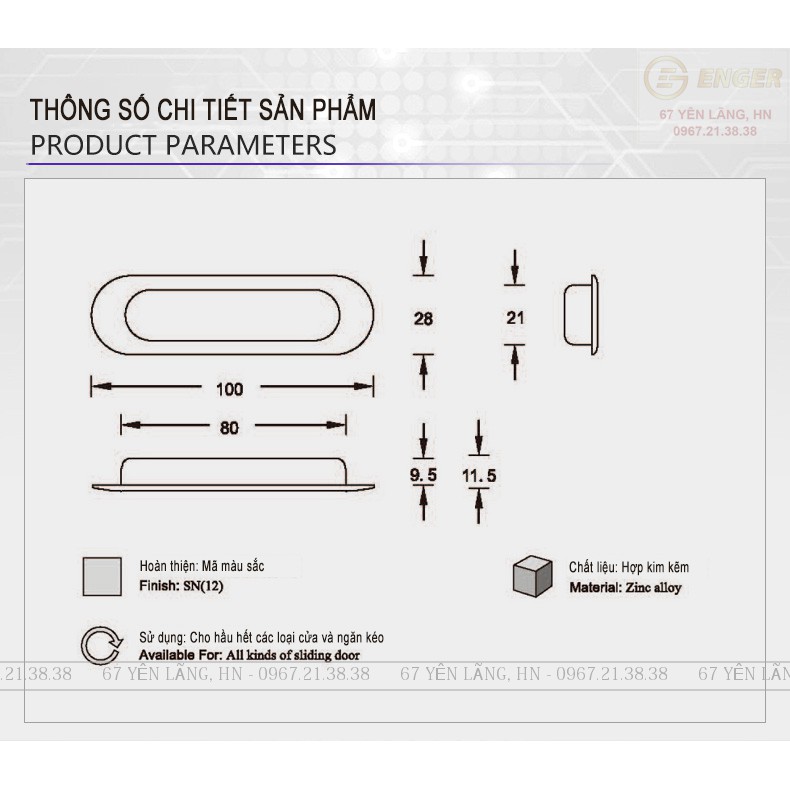 - Kích thước: L (khoảng cách 2 lỗ vít): Mẫu tay nắm âm.