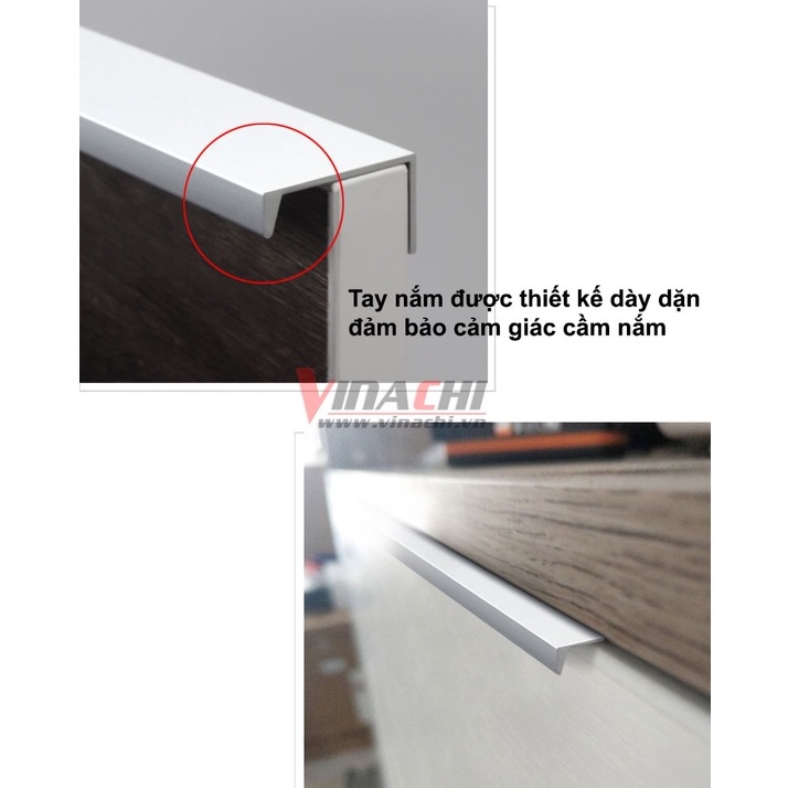 - Loại tay nắm này vô cùng tiện dụng, bạn có thể kéo cánh tủ ra ở nhiều vị trí khác nhau vì tay nắm có thể được lắp đặt trên toàn bộ của cánh tủ. Việc đóng mở hoàn toàn dễ dàng.