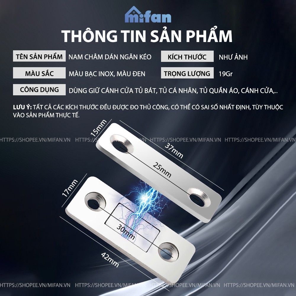NAM CHÂM GẮN CỬA LỰC HÚT CỰC MẠNH MIFAN - THÉP SIÊU BỀN, KEO 3M - DÁN CHỐT TỦ QUẦN ÁO, NGĂN KÉO, CỬA RA VÀO TIỆN LỢICánh cửa tủ quần áo, ngăn kéo, tủ đồ,... sau thời gian dài sử dụng sẽ trở nên lỏng lẻo, bấp bênh, gây bất tiện trong quá trình sử dụng. Nam châm gắn cửa tiện lợi sẽ giúp bạn giải quyết tình trạng này một cách dễ dàng!
