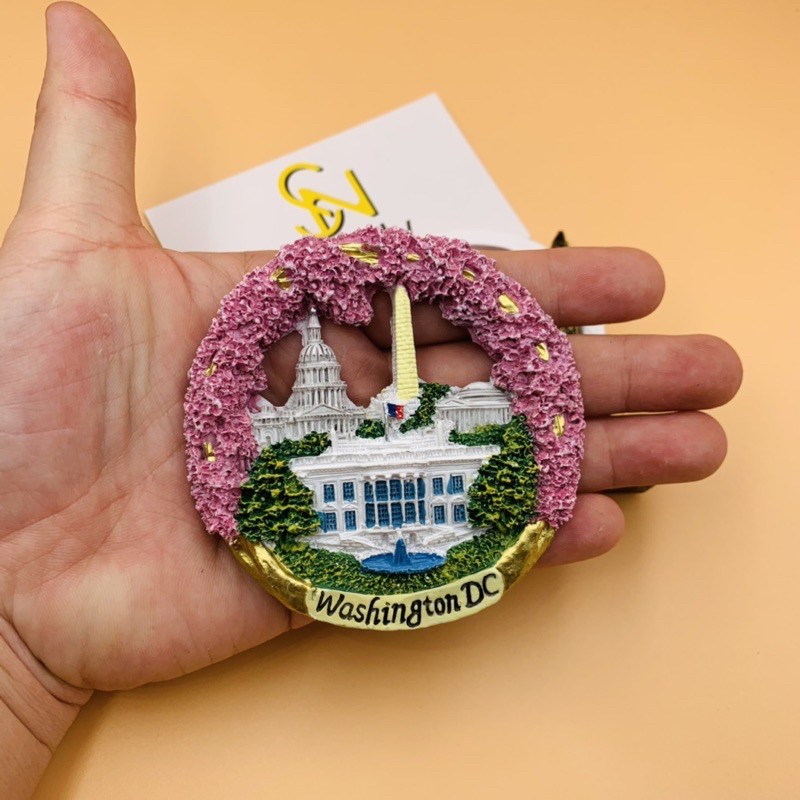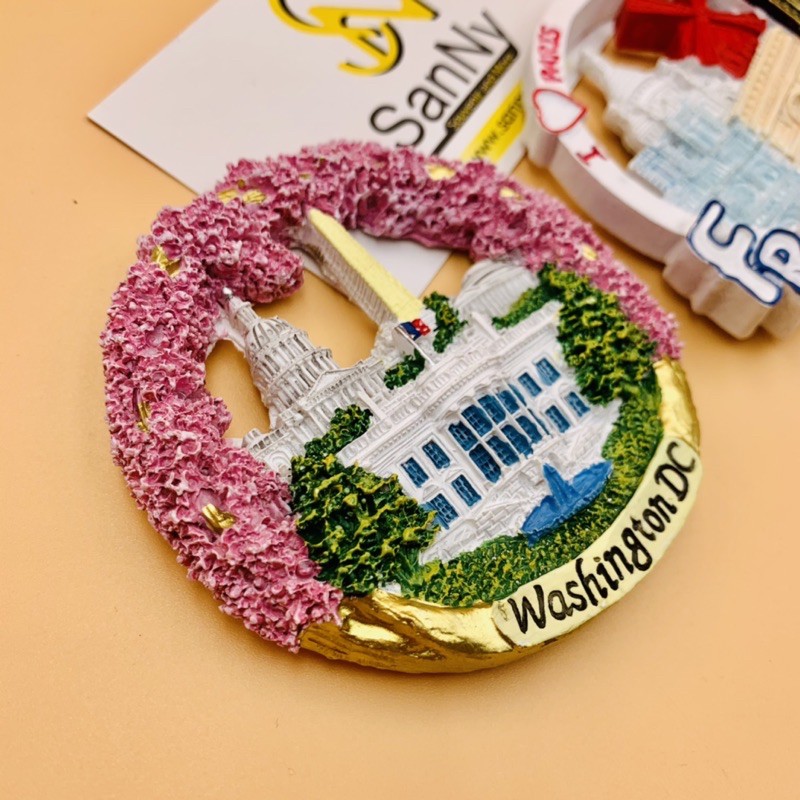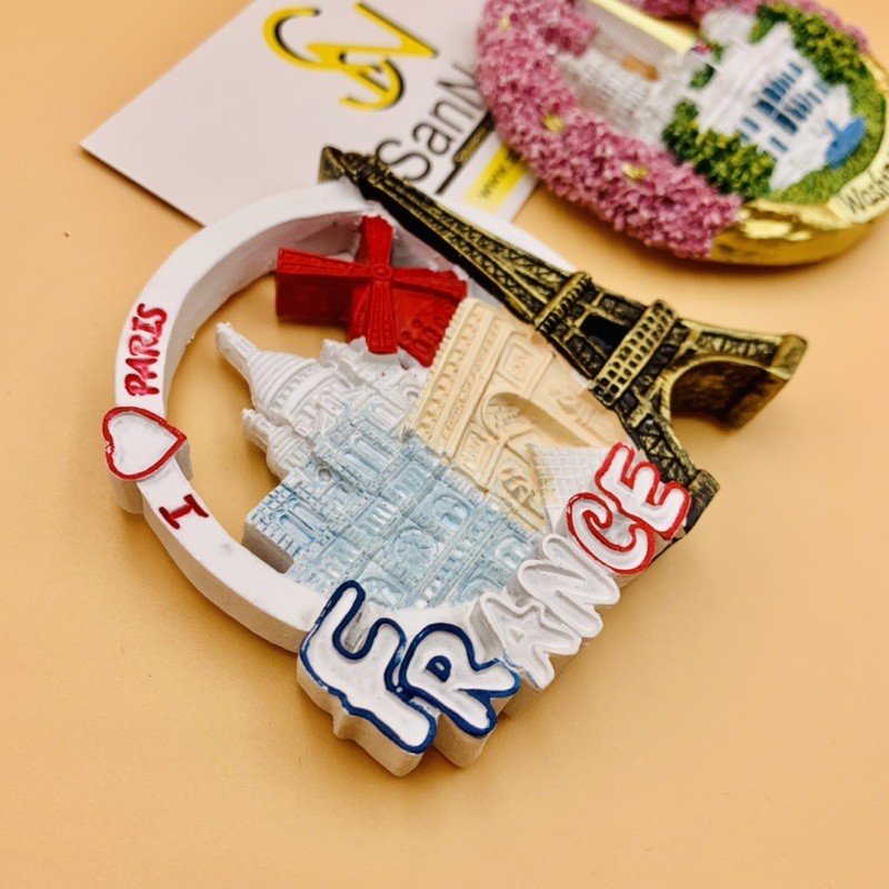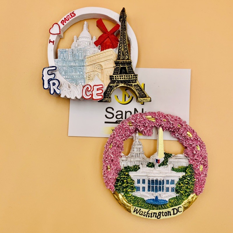 Giới thiệu Nam châm hít dán dính tủ lạnh hình ảnh lưu niệm các nước Mỹ và Pháp kích thước 7cmx7.7cm