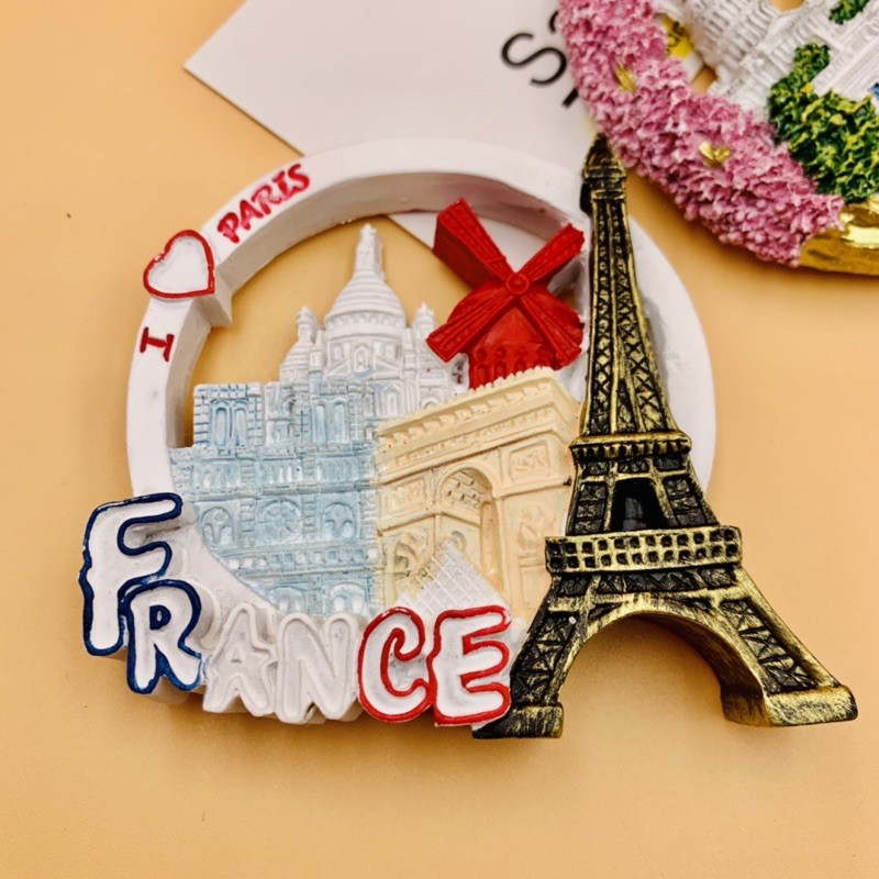 Nam châm hít dán dính tủ lạnh hình ảnh lưu niệm các nước Mỹ và Pháp kích thước 7cmx7.7cm