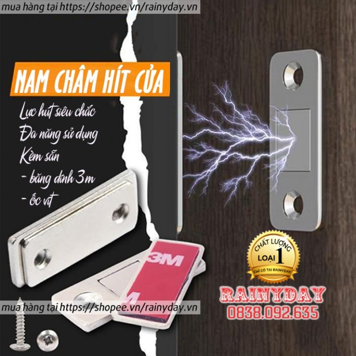 Bộ nam châm hít giữ đóng chốt cửa gắn dán cửa tủ lạnh tủ quần áo chạn bếp nhôm nhựa siêu mỏng
