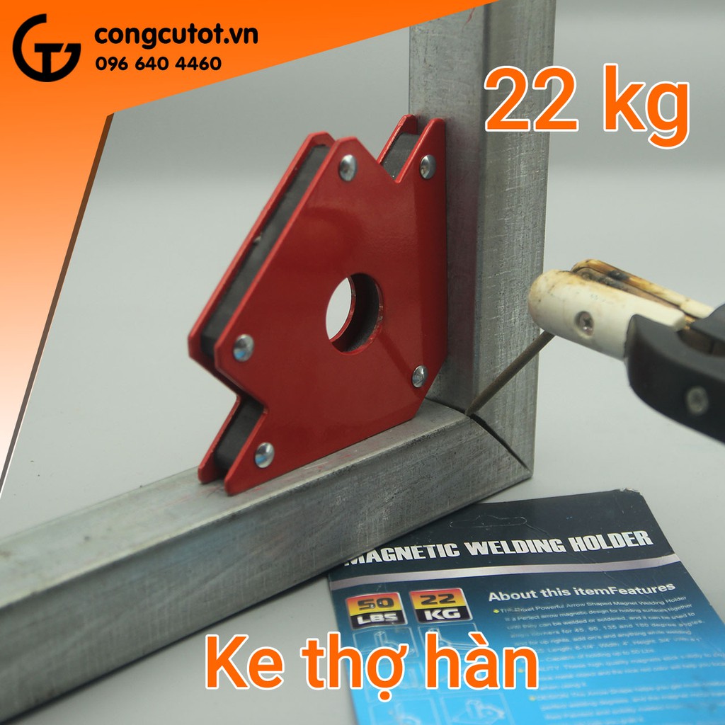 Ke góc thợ hàn bằng nam châm vĩnh cửu 50LBS lực hút 22Kg được sử dụng phổ biến trong lĩnh vực thi công biển bảng, làm khung xương biển bằng sắt một cách nhanh và vuông đẹp. Với chất liệu được nhập khẩu có độ từ cao, có thể hút vĩnh viễn. Việc hàn trở nên dễ dàng với ke góc nam châm.
