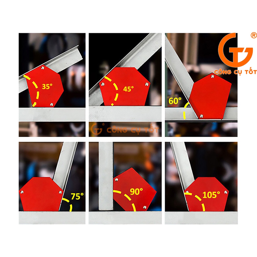 Ke góc lục giác nam châm 4 inch với lực hút 50LBS (22kg) có khả năng giữ hút khối lượng. Ke nam châm có khả năng định hình chính xác các góc: 30°, 45°, 60°, 75°, 90°, 105°. Đây là dụng cụ không thể thiếu của những người thợ hàn, ứng dụng trong sản xuất cơ khí, hàn các góc của vì, kèo nhà, khung sắt, khung cửa, tay cầu thang sắt, bàn ghế sắt, khung biển quảng cáo,…Size: 4 inch - 50LBS.
