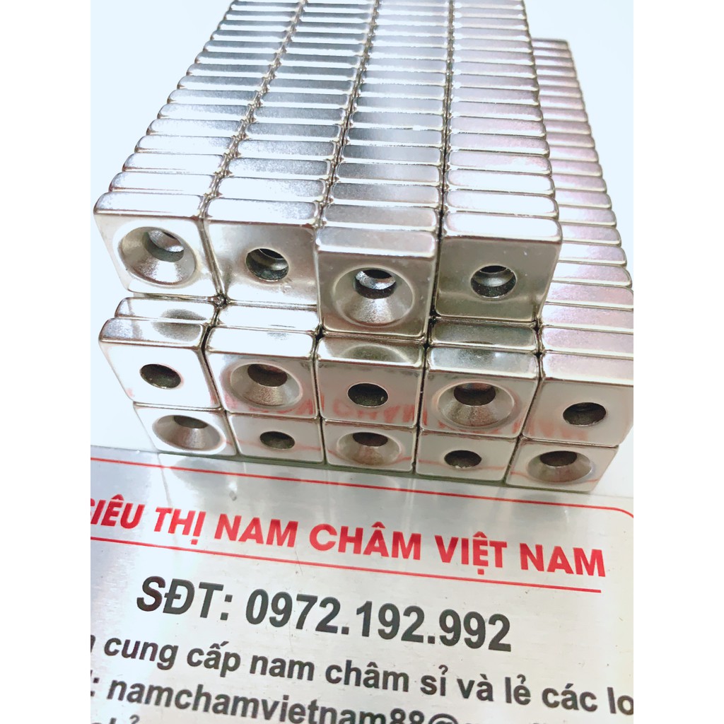 Giới thiệu Nam châm lỗ vít 15x15x5 lỗ vát 6mm (NAM CHÂM ĐẤT HIẾM)