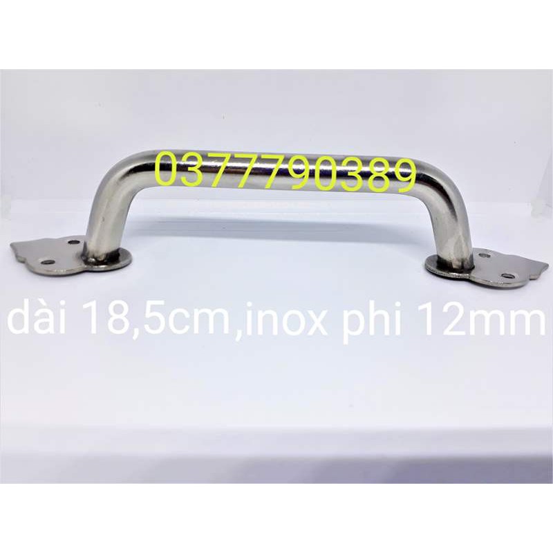 kích thước tính từ mũi đầu tay nắm tới cuối là 18.5cm,thân inox phi 12